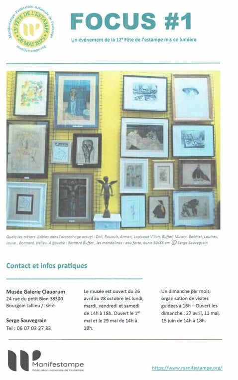 Le Musée Galerie Clauorum est adhérent à la Fédération Nationale de l'estampe et que pour la fete de l'estampe ils ont choisi de mettre le musée galerie clauorum en avant...